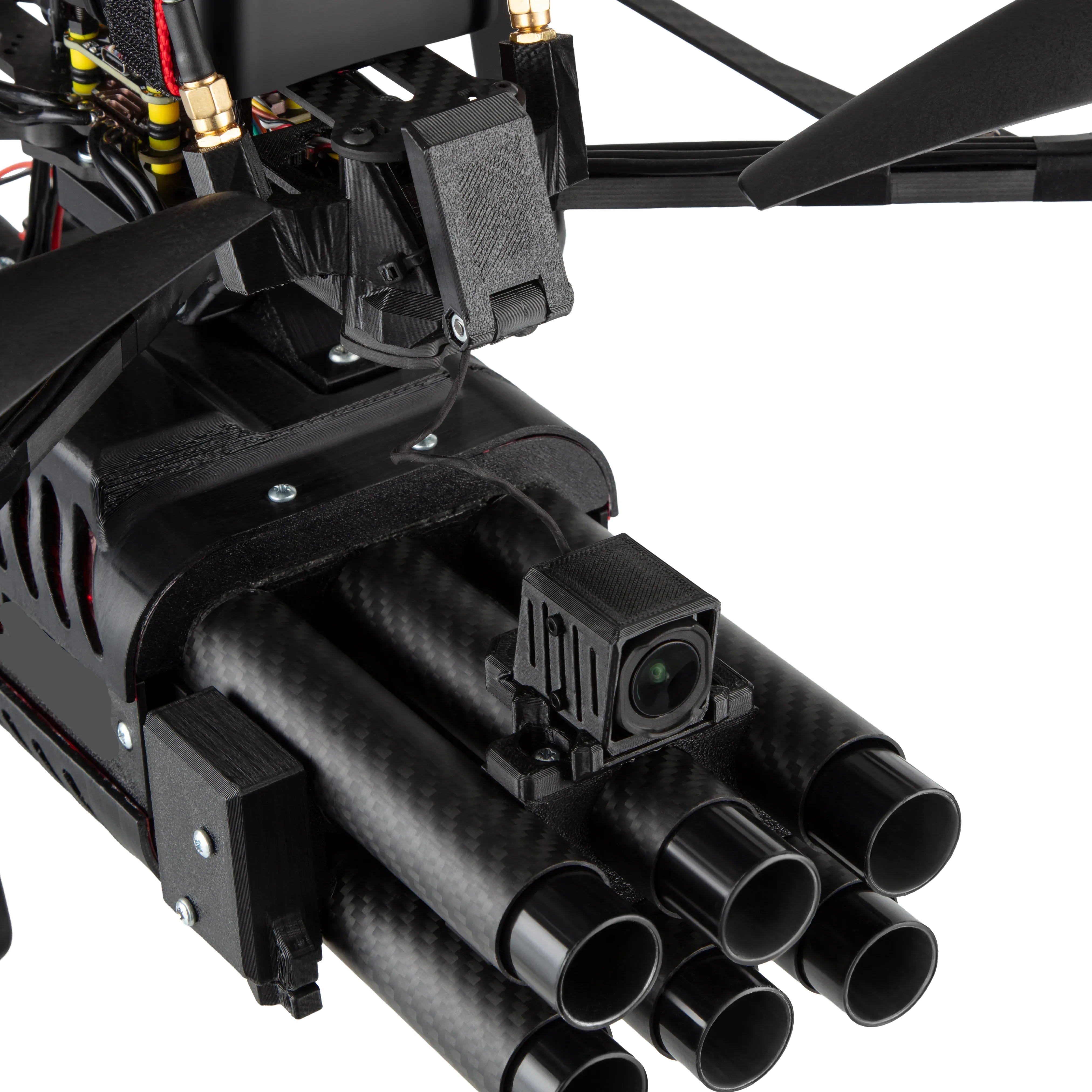 Автономний БПЛА-перехоплювач з модульним озброєнням для нейтралізації FPV-дронів, DJI Mavic та інших повітряних загроз у реальному часі.